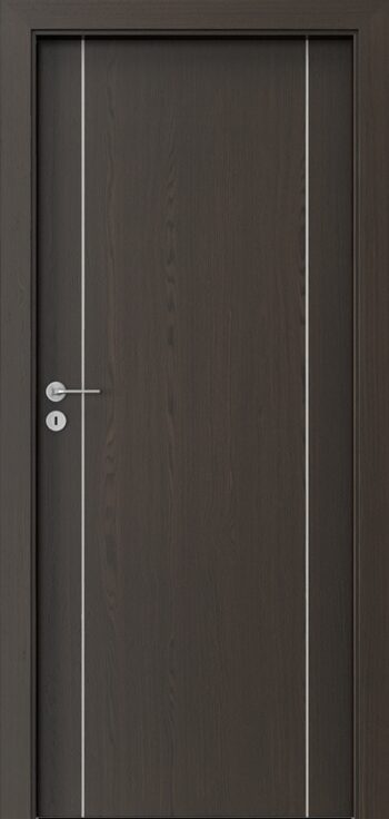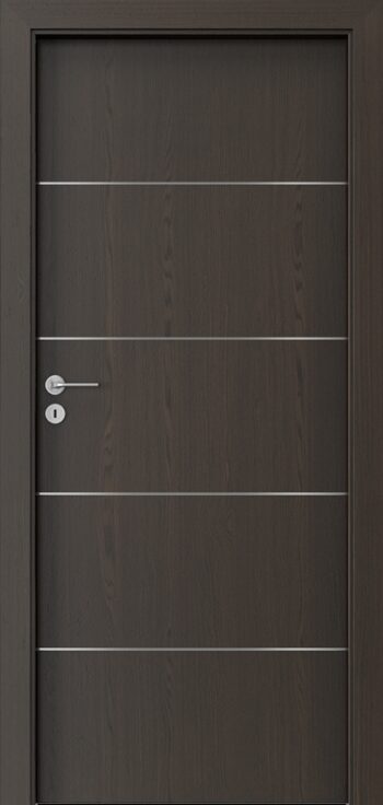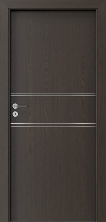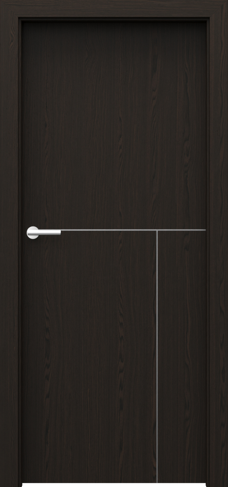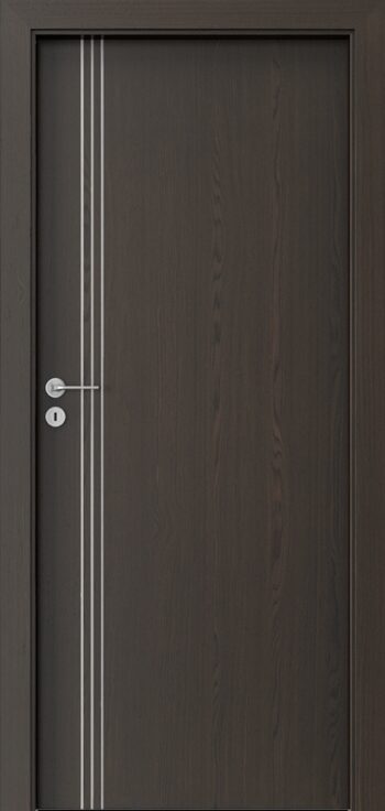 Kolekcia PORTA NATURA LINE ponúka interiérové dvere s povrchom z prírodnej dyhy, ktorá pôsobí teplo a autenticky. Výplň krídla tvorí stabilizačná vložka, pričom za príplatok môže byť použitá dutinková drevotrieska, čo zvyšuje jeho pevnosť. Povrch je ošetrený ekologickým vodným lakom, takže si zachováva prirodzenú textúru a kresbu dyhy. Charakteristickým dizajnovým prvkom sú hliníkové intarzie široké 6 mm, dostupné v striebornej, zlatej alebo čiernej farbe, ktoré dverám pridávajú jemný a moderný detail. Ďalšou výhodou je možnosť skrátenia krídla až o 60 mm, čo umožňuje prispôsobenie otvoru. Norma kvality je PN EN 14351-2:2018-12, čo zaručuje stabilitu a spoľahlivosť. Kolekcia je vhodná pre klasické aj bezfalcové prevedenie a dokonale sa hodí do interiérov s prírodným alebo elegantným moderným štýlom.