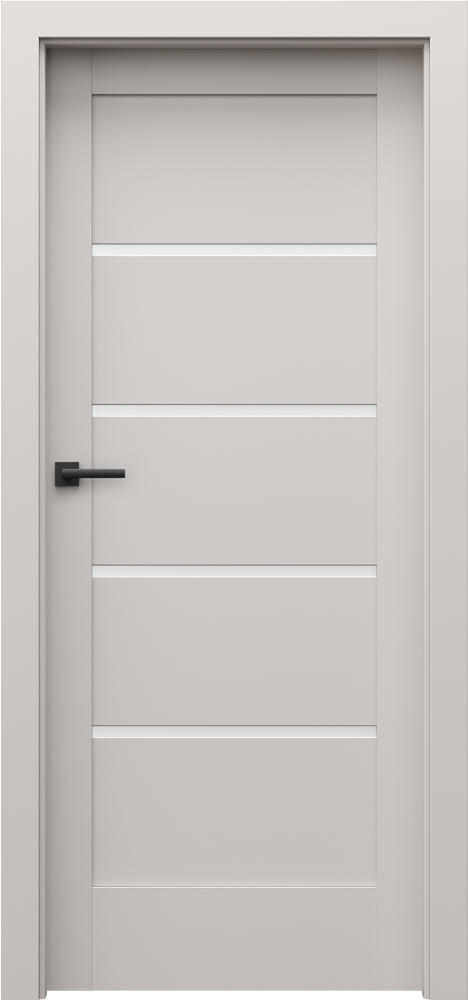 Kolekcia PORTA VERTE HOME, skupina G ponúka rámové interiérové dvere s horizontálnou MDF konstrukciou a výplňami, ktoré môžu byť buď plné panely alebo matné tvrdené sklo hrúbky 4 mm. Spodná hrana krídla je chránená technológiou TechnoPORTA AQUA STOP, čo zvyšuje odolnosť voči vlhkosti. Krídla je možné skrátiť o 30 mm, čo uľahčuje prispôsobenie stavebnému otvoru. Povrchové úpravy sú veľmi variabilné: dekorové fólie, 3D fólie aj imitácie dreva umožňujú široké možnosti dizajnu. Dvere sú vhodné pre klasické otočné aj bezfalcové prevedenia. Ich minimalistický a súčasný vzhľad dodáva priestoru elegantný, ale aj funkčný charakter.
