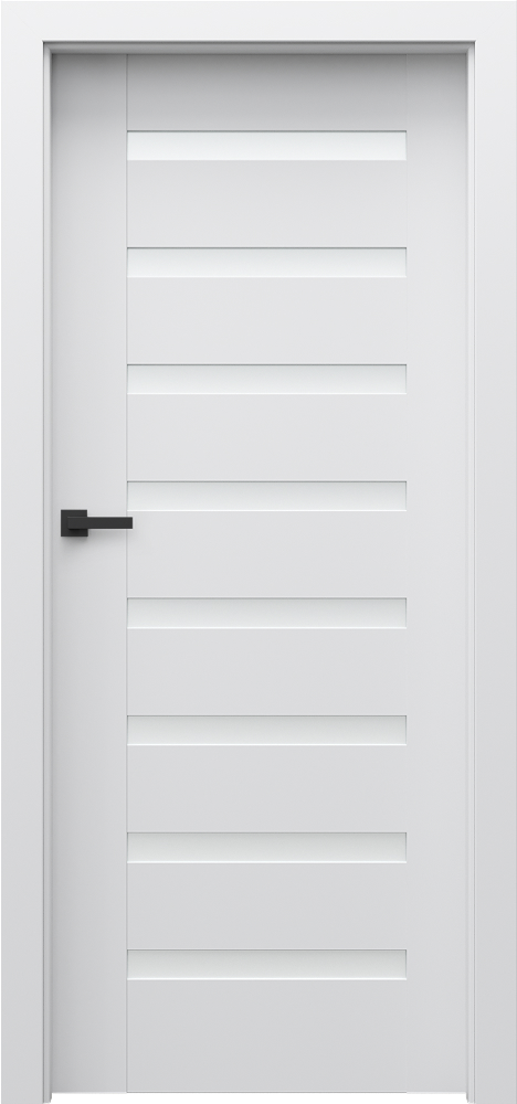Kolekcia PORTA VERTE PREMIUM, skupina D ponúka rámové interiérové dvere s osmi plochými panelmi alebo úzkymi pásikmi matného tvrdeného skla (6 mm). Spodná hrana krídla je chránená technológiou AQUA STOP, ktorá zabezpečuje odolnosť voči vlhkosti. Krídla je možné skrátiť až o 60 mm, čo zjednodušuje montáž. Dostupné sú v širokej škále povrchových úprav: lamináty, dekorové fólie, 3D fólie a prémiové lakované alebo dyhované varianty. Sú vhodné pre klasické otočné, posuvné aj dvojkrídlové prevedenia. Táto kolekcia kombinuje estetický dizajn a praktickosť, pričom jemné presklenie umožňuje jemné presvetlenie interiéru.