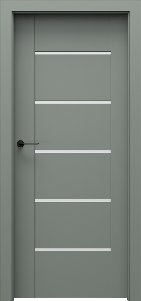 Kolekcia PORTA VERTE PREMIUM, skupina E ponúka rámové interiérové dvere s konštrukciou z horizontálnych rámov a výplňami zo štíhlych panelov alebo matného tvrdeného skla hrúbky 6 mm. Dolná hrana krídla je chránená technológiou AQUA STOP, ktorá zabraňuje prenikaniu vlhkosti a zvyšuje odolnosť. Je možné skrátiť krídla až o 60 mm, čo uľahčuje montáž v rôznych stavebných otvoroch. Dvere sú dostupné v širokej palete dekorov — lakované, dyhované aj fóliové povrchy. Spĺňajú normu PN EN 14351‑2:2018‑12, čo zaručuje ich kvalitu a spoľahlivosť. Sú vhodné pre klasické otočné aj bezfalcové prevedenia a prinášajú elegantný a čistý dizajn, ktorý zapadá do moderných aj tradičných interiérov.