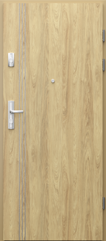 Kolekcia PORTA GRANIT Trieda C sú vchodové bezpečnostné dvere so zvýšenou ochranou: rám je z lepeného ihličnatého dreva, krídlo opláštené dvomi vrstvami hliníka a HDF doskou, čo zaručuje vysokú pevnosť. Dvere majú viacbodový lištový zámok triedy 4, dve bezpečnostné vložky triedy „C“ a štyri tŕne proti vylomeniu, čo zvyšuje ich odolnosť voči vlámaniu. Bezpečnostná trieda je označená ako RC 3 (podľa PN EN 1627-2012) – ide o veľmi vysokú úroveň ochrany. Majú aj akustickú izoláciu na úrovni Rw ≈ 32 dB, čo pomáha znižovať hluk z vonkajšieho prostredia. Povrch dverí je dostupný v CPL lamináte alebo v prírodnej dyhe, pričom niektoré verzia majú hliníkové intarzie v striebornej alebo čiernej farbe. Spodná hrana krídla využíva technológiu AQUA STOP, ktorá chráni pred vlhkosťou. Typ II týchto dverí ponúka navyše protipožiarnu odolnosť EI 30.