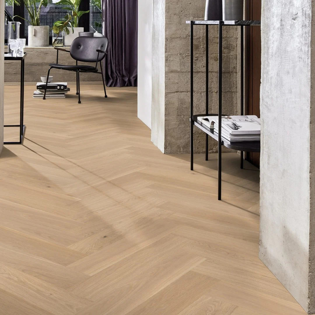 14 mm Plank Chevron je luxusná drevená podlaha s klasickým vzorom Chevron, ktorý dodáva interiéru elegantný a sofistikovaný charakter. Lamely sú rezané pod uhlom a spájané do tvaru písmena „V“, čím vytvárajú harmonický a dynamický vzhľad. Vďaka hrúbke 14 mm ponúka podlaha výbornú stabilitu a odolnosť, čo ju robí vhodnou aj pre priestory s vyššou záťažou. Povrchová úprava zvýrazňuje prirodzenú textúru dubového dreva a zaručuje dlhodobú krásu i jednoduchú údržbu. Ideálna voľba pre tých, ktorí hľadajú spojenie tradície, kvality a moderného štýlu.