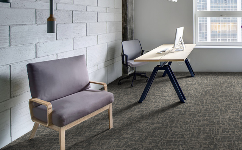 Štruktúrovaný kobercový štvorec s prírodným charakterom, inšpirovaný prírodou, vytvára efekt jemnej viacrozmernej mriežky, dostupný v zemitých farbách od svetlej béžovej až po odtiene antracitovej a čiernej.