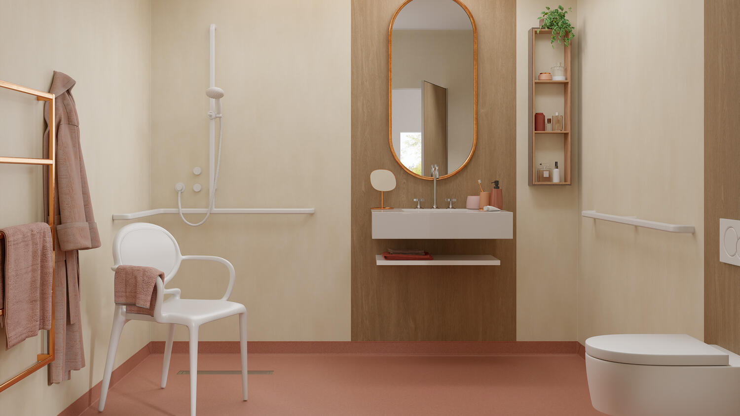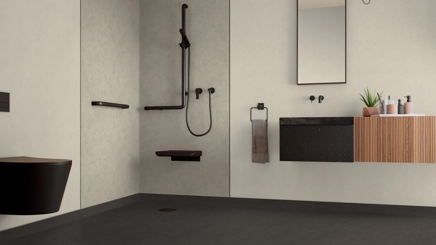 Aquarelle Wall HFS je vodeodolná vinylová stenová krytina, ktorá je k dispozícii v rade jemných farieb a vzorov inšpirovaných prírodou a je určená na použitie vo vlhkých priestoroch, ako sú mokré miestnosti pre pacientov v liečebniach a zariadeniach pre seniorov alebo spoločné sprchy a šatne vo vzdelávacích budovách. Táto hygienická stenová krytina je nehorľavá, ľahko sa udržiava a je odolná proti poškriabaniu a škvrnám. Je súčasťou kompletného konceptu mokrých priestorov Aquasens, vrátane zladených podláh a príslušenstva. Dá sa kombinovať s kolekciami Protectwall a Excellence pre ďalšie priestory budovy.